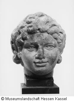 Erhaltungszustand/Restaurierung: Unergänzt. Hals gebrochen. Rundum verwittert und bestoßen, insbesondere der füllige Haarkranz, Nase, Kinn. Vermutlich im 18. Jh. Oberfläche geputzt. Abarbeitungen: auf dem Oberkopf Loch für Anstückung (?), zwischen Kalotte und voluminöser Lockenfrisur für Band oder Kranz (?), oben am Stirnrand und Haar, unten am Nackenhaar. Restaurierung 1912/13: (Bieber 1915). Im 2. Weltkrieg brandgeschädigt. Restaurierung 1985: gereinigt.
